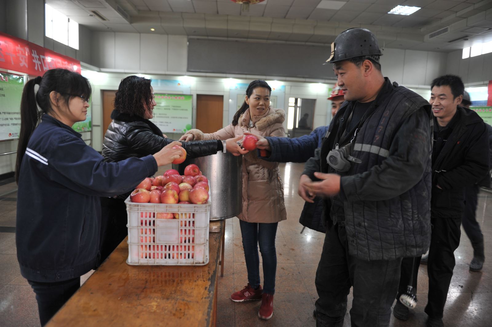 12月24日,女工安全协管员在井口信息站大厅为入井和上井职工送上象征平安的大苹果,并送上节日祝福和安全叮嘱,叮嘱入井职工要严格遵章守纪、按照操作,把好安全生产关,职工们接过女工安全协管员们送的象征平安的苹果,听着女工安全协管员的安全嘱咐,脸上都洋溢着幸福的笑容,纷纷表示施工前一定把安全工作放在一切工作的首位,施工时做好自主保安,一定按章作业,牢记安全第一,把好安全生产关。本次井口慰问活动共为入井和上井职工送苹果300余斤。