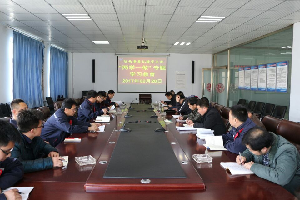 2月28日,百吉、亿隆、海则庙项目部按照陕西鲁泰党总支"两学一做"周学习计划,对《习近平在省部级主要领导干部学习贯彻十八届六中全会精神专题研讨班开班式上重要讲话精神》、《中共中央政治局召开会议讨论政府工作报告》会议精神以及《<两学一做>"不收场"的党性之旅》等内容进行了学习,项目部全体党员、中层及以上管理人员和部分职工参加了学习。