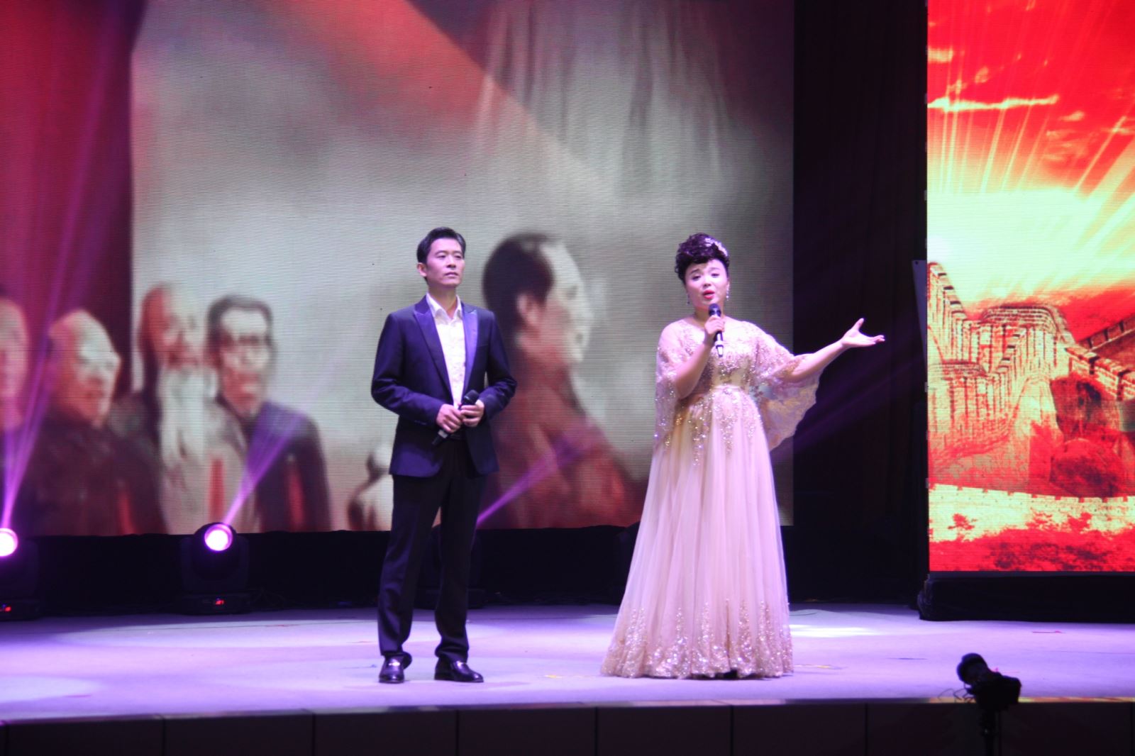 集团公司副总经理薛培华,集团公司政治部、工会办公室主要负责同志及矿党政班子成员亲临演出现场,与广大职工一起共庆党的生日,共品文化大餐,共度美好时光。矿党委书记汤保民作了情真意切的精彩致辞,并提议给在前排就坐的先模人物、优秀共产党员代表献花致敬。展演在阵容庞大、气势恢宏的大合唱《我们走在大路上》激越雄浑的歌声中拉开帷幕。