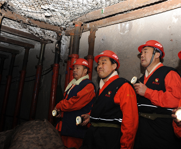 周光全一行到矿后,直接下井,先后到鹿洼煤矿采二工区23下03 综采工作面、1号避难硐室、1号过渡站等处督导检查,每到一处督导组都仔细检查,详细询问安全生产工作情况。升井后,在矿行政办公楼四楼会议室,矿长张运宪汇报了鹿洼煤矿近期安全生产工作,认真贯彻执行《煤矿矿长保护矿工生命安全七条规定》情况,市煤炭局两会期间安全生产文件落实情况,井下安全避险"六大系统"建设情况,四级隐患排查治理、领导下井带班等工作情况。