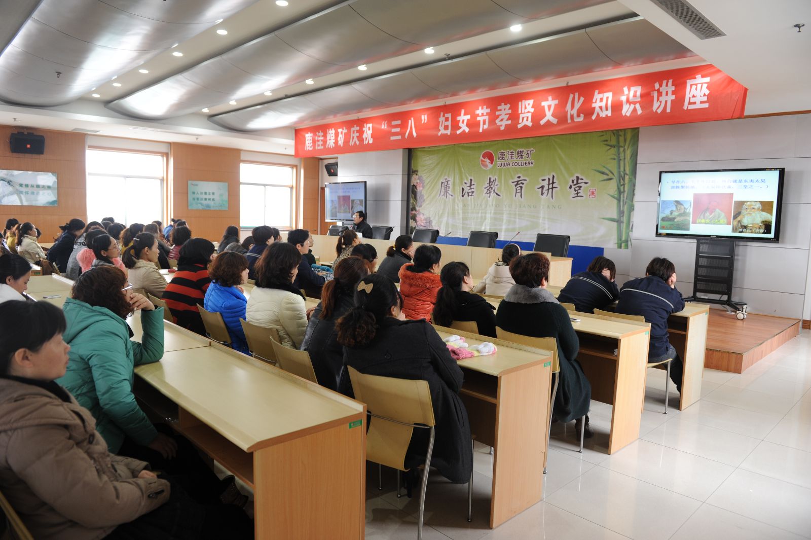 3月5日—7日,鹿洼煤矿工会开展了女职工趣味活动、举办了孝贤文化知识讲座,到生产现场看望女职工并给她们送去节日祝福。3月7日,太平煤矿工会组织举办了"服务示范化巾帼展风采"演讲比赛活动,来自全矿十一个支部共16名女职工参加了比赛。3月8日,金威煤电工会召开了"庆三八、展风采"交流座谈会,并在会上表彰了一批"三八红旗手"、"和谐家庭"和"好媳妇"。 3月6日,公司机关应邀参加了集团公司举办的庆祝"三八"国际劳动妇女节趣味活动,并于3月7日上午组织公司机关及各企业部分女职工代表参加了"快乐工作、健康生活"为主题的健康知识讲座。