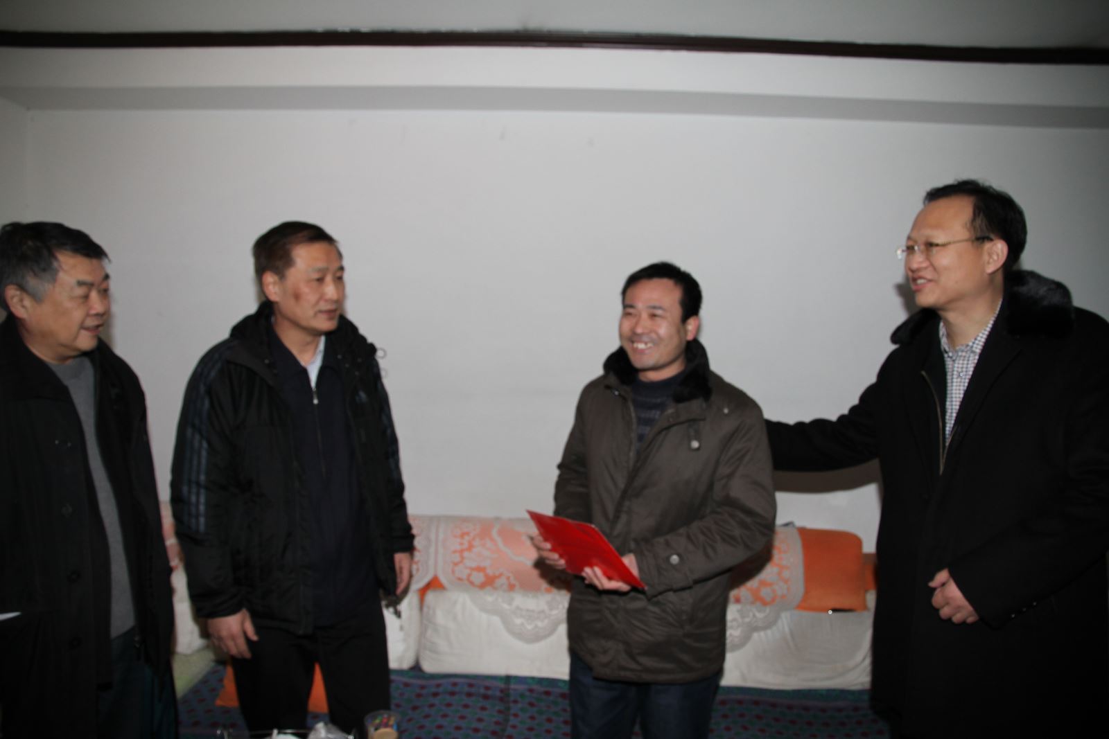 寒冬涌动暖流,真情滋润心田。座谈会结束后,王立亭一行又来到困难职工家中走访慰问,为他们送上省局的关怀和节日的祝福。在鹿洼煤矿张祥振家中、太平煤矿于秀娟家中,王立亭都详细询问困难职工的工作、生活、病情治愈等情况以及需要解决的困难,叮嘱他们要好好保重身体,树立信心,积极面对工作生活,勇敢战胜病魔和困难,并送上了2000元慰问金。同时,他要求企业相关部门高度关注困难职工的生产生活,切实落实帮扶、救助政策,及时帮助解决实际困难和问题,把组织的关怀和温暖送到困难职工身边,确保他们度过一个欢乐祥和的春节。