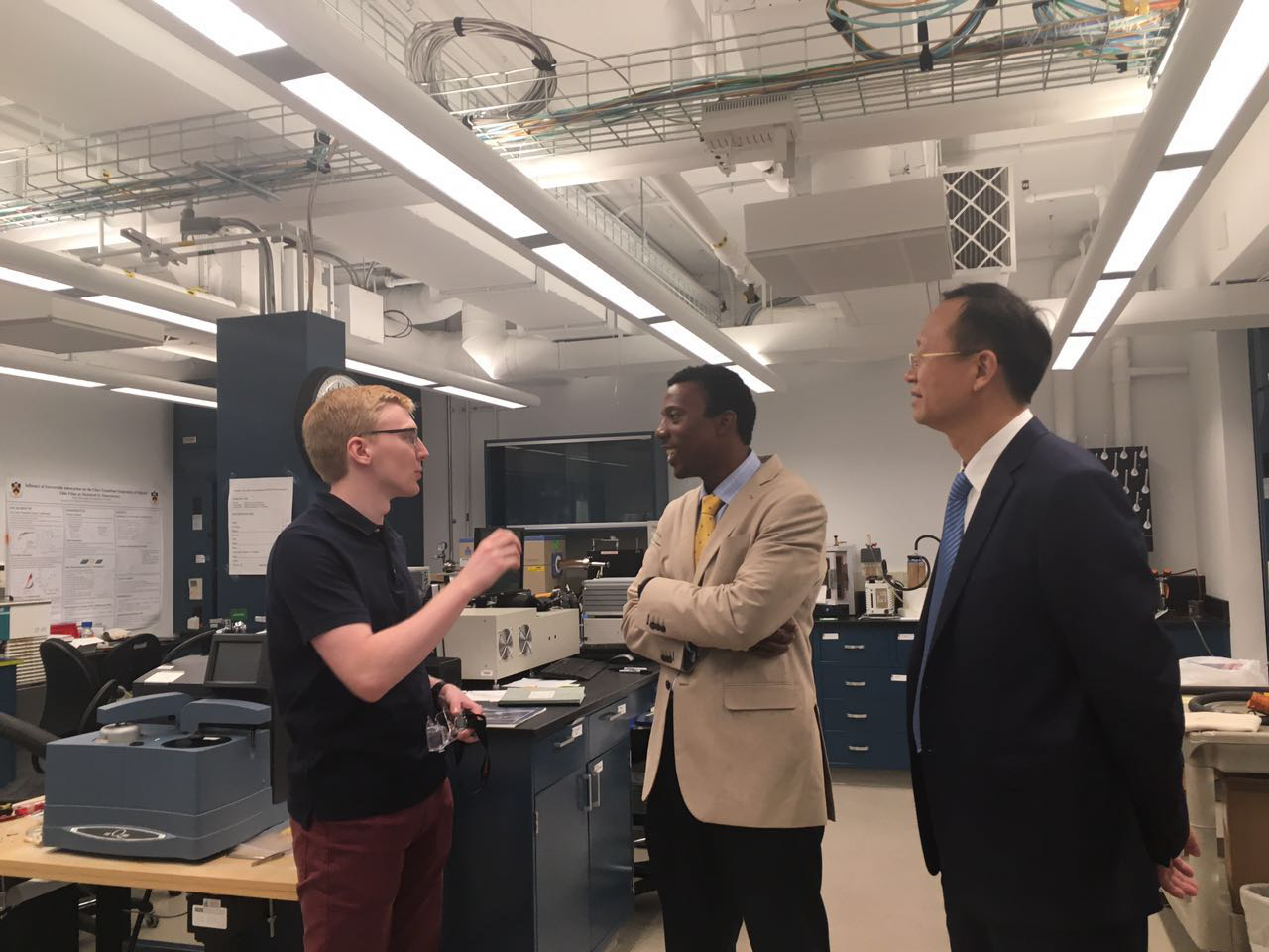 当日下午,普林斯顿大学材料科学和技术研究所(PRISM)主任克雷格.阿诺德教授和罗德尼.普利斯特列教授全程陪同李合军一行,参观了该研究所高分子和复合材料实验室及普利斯顿大学特有的实验设备。李合军一行还参观了普林斯顿大学有300年历史的校园,同时访问了普林斯顿大学的其他研究机构。