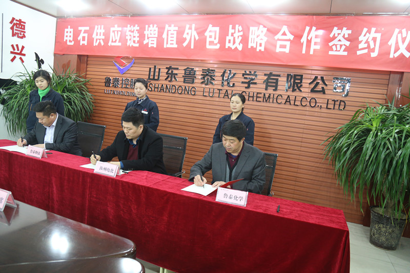 12月27日,山东鲁泰化学有限公司、山东鲁泰物流有限公司和中国平煤神马集团汝州电化有限公司齐聚在美丽的"鱼米之乡"山东鱼台,隆重举行电石供应链增值外包战略合作签约仪式。鲁泰化学公司董事长、党委书记张玉标,鲁泰物流公司执行董事、总经理张国森,汝州电化公司总经理安延雷出席仪式并签约,鲁泰物流公司副总经理张红艳主持签约仪式。